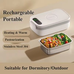 1000ml Portable Wireless Rechargeable Electric Lunch Box Smart Temperature Control LCD Display No Water Filling USB Battery Car